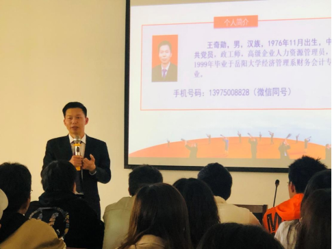 讲座伊始,王总经理通过提问的方式向大家阐述了岳阳酒店业目前处于外部经营环境面临挑战;客户体验期望值较大;科学技术不断创新等经营困境,并列举了南湖宾馆、华瑞丹枫大酒店、泰和大酒店、铂尔曼大酒店作为岳阳酒店行业的龙头企业是如何突破经营困境的。在提问环节,王总经理对员工们提出的疫情复苏期间泰和大酒店采取了哪些措施,岳阳民宿发展现状等问题做出了详细的解答,面对同学们对旅游行业就业情况的疑虑,他表示,外貌、性别、身高都不是阻碍一个人成功的因素,只要坚持自己的热爱,坚定不移的朝着自己的目标努力前进,每个人都可以达到自己心中所向往的地方。