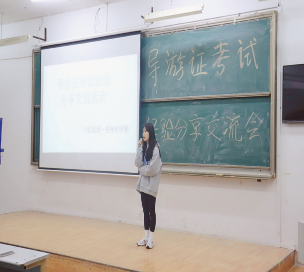 2021年导游证考试的经验分享交流会于3月27日晚7点—9点在8T1教室顺利举行,该分享会由太阳成集团tyc122ccvip‍‍‍‍‍‍‍‍老员工旅游协会主办。活动分别邀请了2017级、2018级和2019级已成功考取导游证的学姐们,来分享其备考和考试中的方法和技巧。此次交流会旨在为想要考取导游证的同学们提供一些经验让他们能够更充分地准备考试,全体2020级旅游管理专业同学认真听取了交流会。