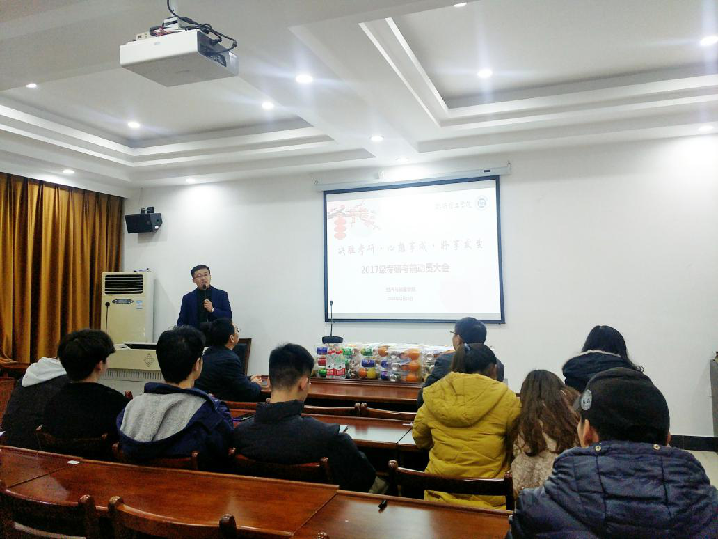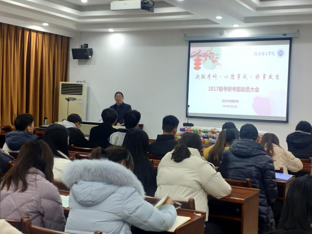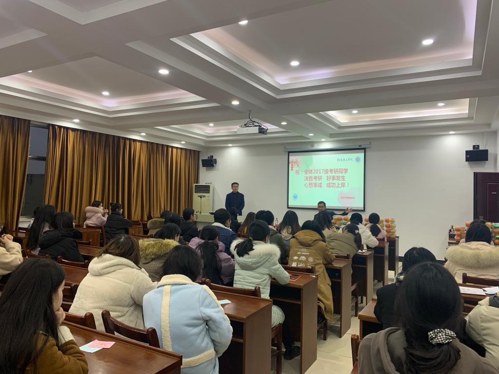 12月23日下午4:00,太阳成集团tyc122ccvip举行了2021年全国研究生入学考试考前动员大会,为2017级146位备考研研究生入学考试的全体同学加油鼓舞。