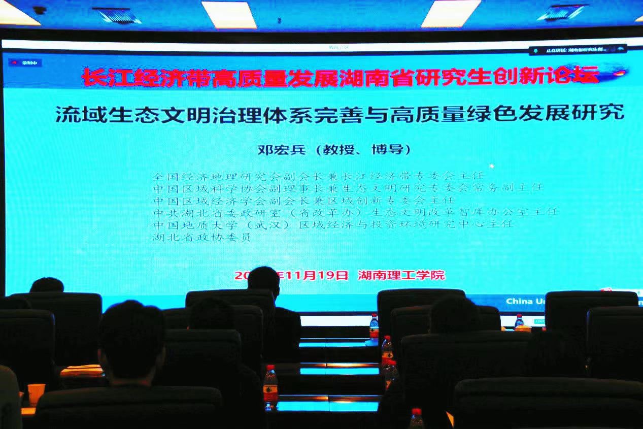 论坛邀请了湖南师范大学王兆峰教授、武汉大学吴传清教授和中国地质大学(武汉)邓宏兵教授做主旨报告。湖南师范大学王兆峰教授以《环长株潭城市群旅游业高质量发展》为主题,系统地介绍了旅游业高质量发展理论内涵框架,以环长株潭城市群旅游业为实证研究对象揭示其区域异质性,并提出了促进旅游高质量发展的对策建议。武汉大学吴传清教授以《化工产业高质量发展的“宜昌样本”及其示范价值》为主题,介绍了团队在长江经济带产业发展、长江经济带创新驱动与绿色转型发展以及长江流域经济研究等方面的系列成果,并以湖北省宜昌市为例重点介绍了其在化工产业高质量发展的实践进展与示范价值。中国地质大学(武汉)邓宏兵教授以《流域生态文明治理体系完善与高质量绿色发展》为主题,从政策与实践诉求、理论诉求、治理能力现代化和高质量绿色发展四个方面,对流域生态文明高质量发展新格局的形成机理、动力机制和建设目标进行了系统性研究,致力于促进生态文明研究领域的合作与发展,提高生态文明研究的深度与广度。