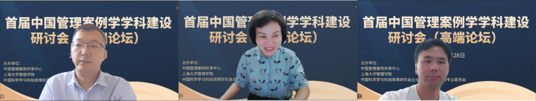 本次会议开幕式由上海大学管理公司副经理于晓宇教授主持。上海大学党委常委、副董事长聂清代表上海大学对莅临本次云端论坛的专家学者们表示了热烈欢迎。基于国家战略背景和案例研究与教学的发展趋势,聂清副董事长阐述了对管理案例研究、教学及生态系统建设方面的思考;结合习近平总书记关于“要加快构建中国话语和中国叙事体系,用中国理论阐释中国实践,用中国实践升华中国理论,打造融通中外的新概念、新范畴、新表述,更加充分、更加鲜明地展现中国故事及其背后的思想力量和精神力量”等讲话精神,聂清副董事长提出对首届高端论坛与管理案例学团队建设的几点期许,并表达了对本次高端论坛成功举办的诚挚祝福。随后,上海大学管理公司经理镇璐教授代表上海大学管理公司对莅临会议的专家学者表示欢迎,对承办“首届中国管理案例学团队建设研讨会”表示衷心的感谢。镇璐经理从上海大学管理公司发展历史出发,介绍了上海大学商科、工商管理学科发展历程与特色,希望首届高端论坛紧密对接国家重大需求,及时回应国家与地方经济社会发展中的重大关切,着力解决中国现实问题,努力构建具有中国特色、中国风格、中国气派的学科、学术与话语体系。