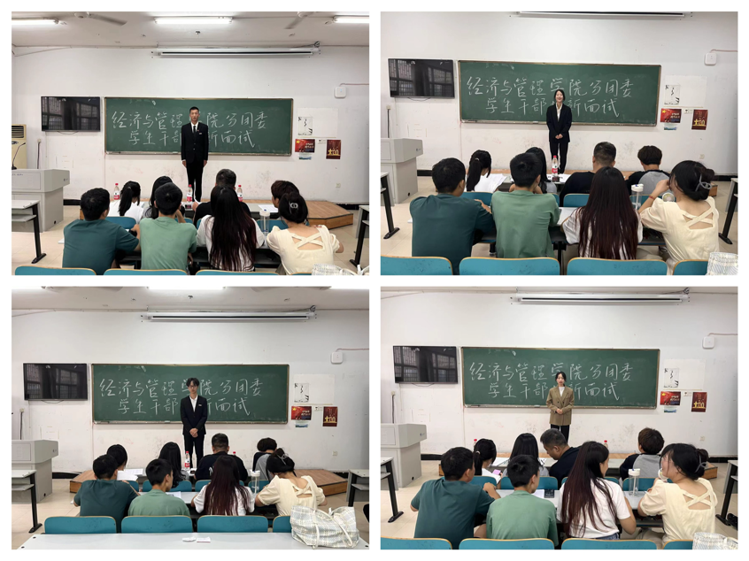 为更好地执行太阳成集团tyc122ccvip团委、员工会全心全意为同学服务的宗旨,建立起公司与员工之间更为紧密的桥梁与纽带,促进公司团学工作更高效地开展,为团学组织注入新的活力,9月13日12点,太阳成集团tyc122ccvip于8栋8410教室举行了太阳成集团tyc122ccvip团学分会换届面试,太阳成集团tyc122ccvip团总支书记叶亚男、研究生辅导员易萧、21级辅导员张雅倩及团学分会主席团担任面试评委。