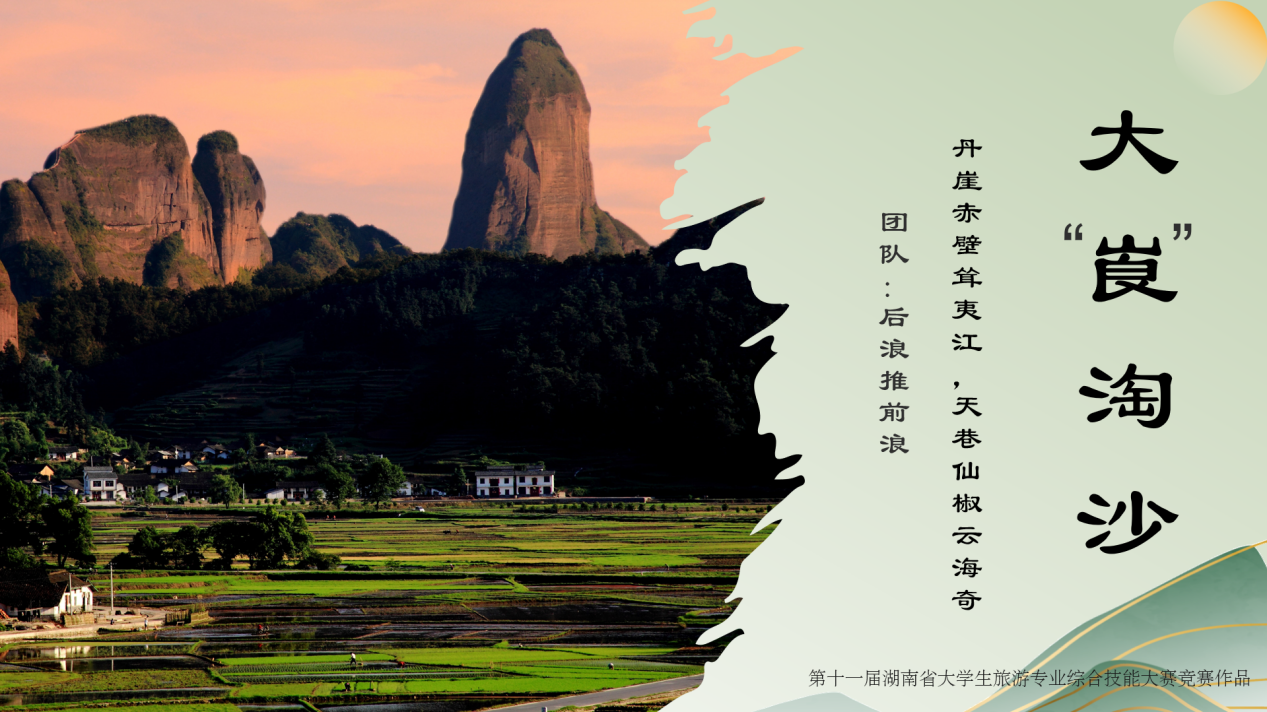 由吴忠才教授、金一博士指导,秦骏好、尹珍妮、贾靖雯三名同学共同完成的营销策划作品《大“崀”淘沙》,以“崀山风景名胜区”为研学选址,“激发学习兴趣,体验当地文化”为研学目的,“大‘崀’淘沙”为研学主题的作品创作要素,旨在借助崀山研学旅行,为中小员工提供更加丰富、多元的学习体验,通过亲身实践加深对课本知识的理解与运用。