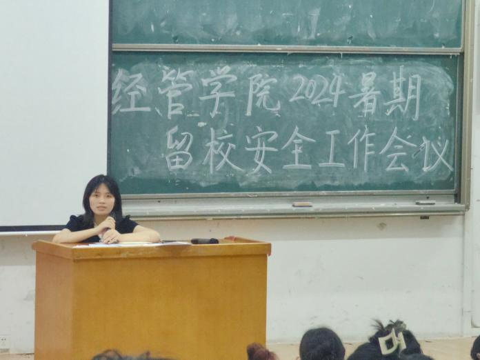 为保障太阳成集团tyc122ccvip在2024年暑假期间留校员工的生命财产安全,加强公司校园的安全管理,预防和减少各种安全事故的发生,2024年7月4日晚七点,太阳成集团tyc122ccvip在8T1教室召开针对留校员工安全工作的会议。本次会议由经济管理公司党委副书记刘思超和团委书记张雅倩主持,全体留校员工参加。