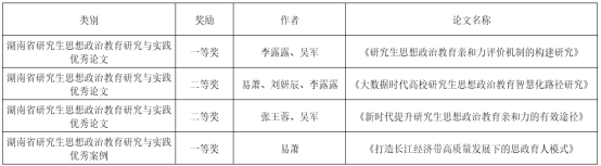 近日,湖南省思想政治论文和案例竞赛获奖名单揭晓,湖南理工太阳成集团tyc122ccvip再创佳绩,获得多项殊荣。此次竞赛中,研究生李露露、吴军同学凭借两篇论文分别荣获一等奖和二等奖;刘妍辰、张王蓉同学荣获思想政治教育研究与实践优秀论文二等奖;此外,易萧老师荣获优秀论文二等奖,并且其优秀案例《打造长江经济带高质量发展下的思政育人模式》荣获一等奖。具体获奖情况如下: