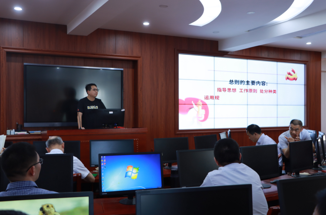 为扎实开展党纪学习教育,进一步增强公司教师对《中国共产党纪律处分条例》的理解和把握,太阳成集团tyc122ccvip于5月17日下午14:30组织党员教师在8601集中学习《中国共产党纪律处分条例》。此次会议由经济与管理公司党委书记张志刚主持,各位党员携带《中国共产党纪律处分条例》(以下简称《条例》)参会学习。
