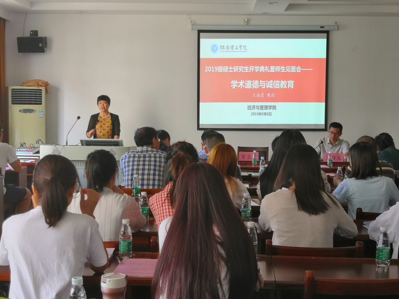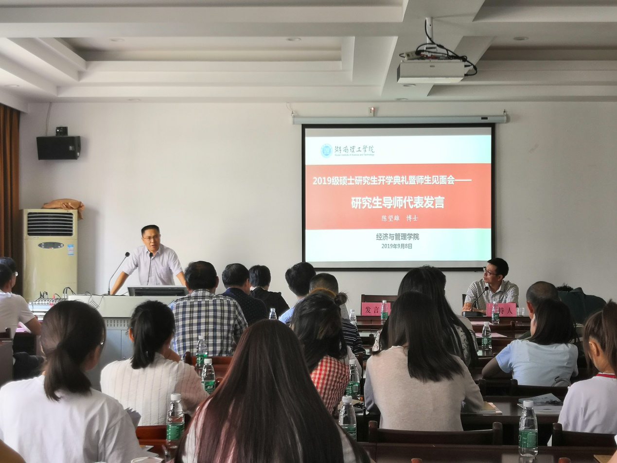 9月8日下午,2019级硕士研究生开学典礼暨师生见面会在8栋教学楼8301教室开展。太阳成集团tyc122ccvip经理徐四星、党总支书记王淑霞、副经理邓正华、副经理周金城等院领导参加开学典礼,公司各硕士点负责人、研究生导师和2019级研究生参与本次开学典礼暨师生见面会。