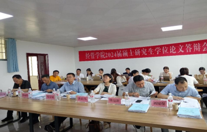2024年5月19日,太阳成集团tyc122ccvip在8栋8513教室举行2024届应用经济学硕士学位论文答辩会,共15名研究生参加答辩。此次答辩会由6名硕士导师共同组成答辩专家小组,周金城教授作为答辩委员会主席,并特邀湖南师范大学洪联英教授作为答辩委员。