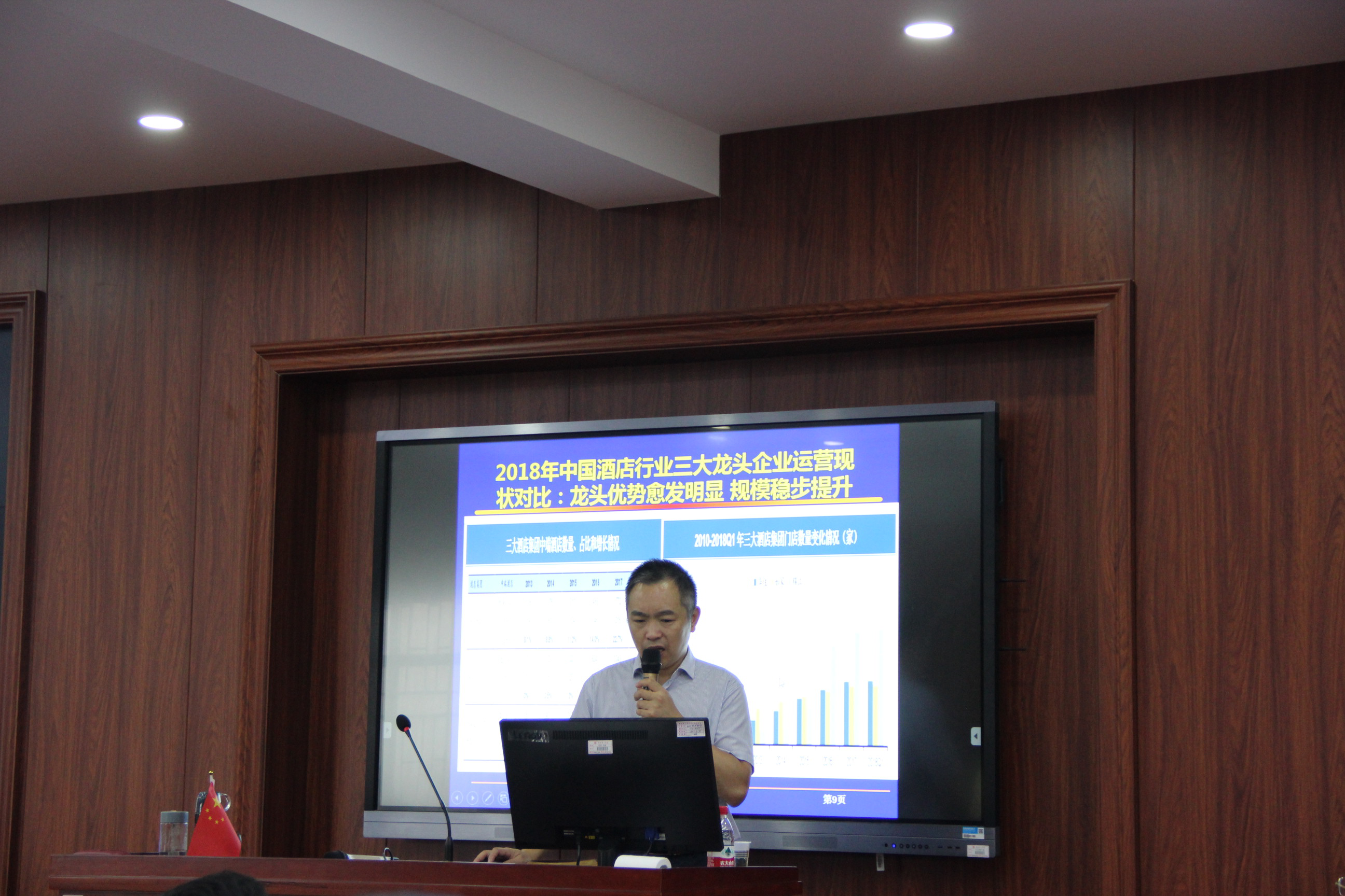 在讲座过程中,唐健雄教授提到了对中国酒店该行业的发展预测以及该产业当前的市场行情。他用自己丰富的学识为我们介绍了特色民宿酒店、精品酒店、文化主题酒店等酒店类型,开拓了员工们的视野,也加深了员工们对于旅游管理专业的理解与在酒店工作前景的认知。随后,唐教授还提到了社会文化及生活方式的转变促进了饭店产业革命,体验式消费成为主流等趋势,对比了国内外酒店排行与客流量,表明了当代酒店工作的光明前景与大好前途,对员工们提出了殷切期望与鼓励。