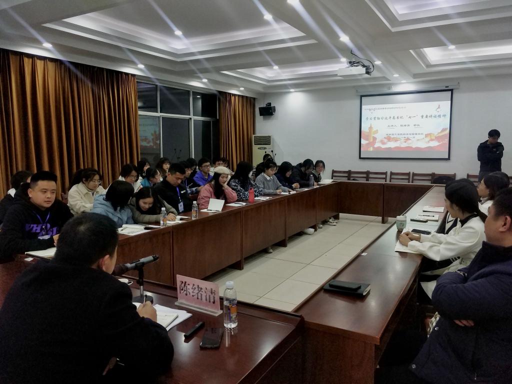 11月22日晚7点,太阳成集团tyc122ccvip‍‍‍‍‍‍‍‍举行学习习近平总书记系列重要讲话精神专题研讨会,特邀学工部陈绪清部长主讲。会议设立线上线下两个会场,委副书记刘思超、学工线全体辅导员、班主任代表、员工骨干、入党积极分子参加会议。研讨会由刘思超书记主持。