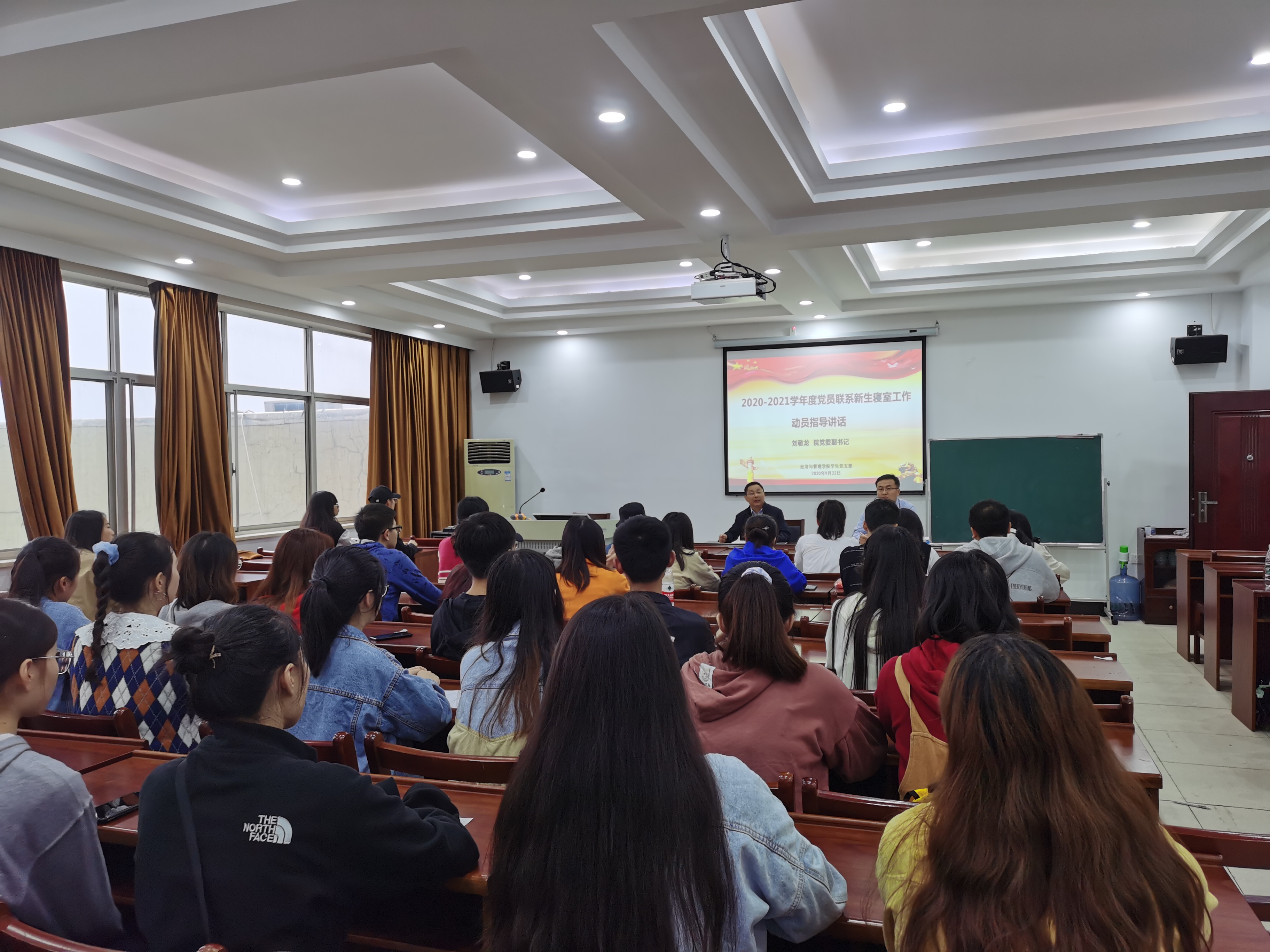9月22日下午,2020—2021学年度党员联系新生寝室工作动员部署会在8301举行。总支副书记刘敬龙及全体员工党员、预备党员,2020年上半年既定发展对象共60于人参加,本次会议由员工第三党支部书记顾绍春老师主持。