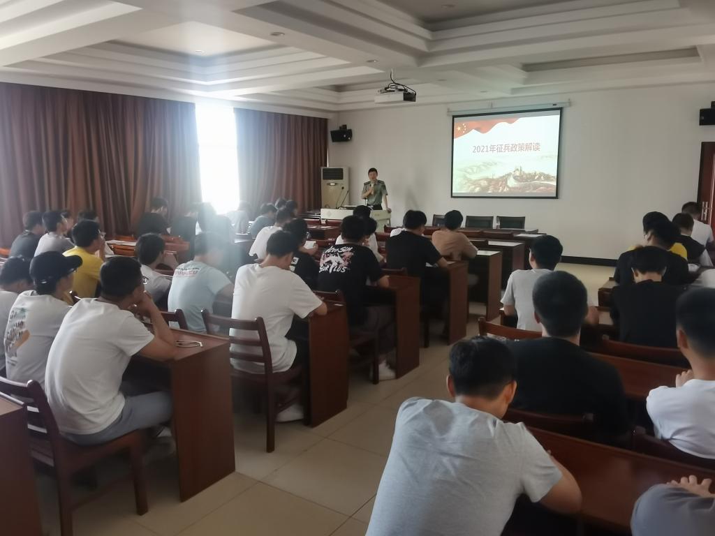 太阳成集团tyc122ccvip‍‍‍‍‍‍‍‍积极传达和落实公司2021年征兵工作会议部署,此次宣讲动员会由毕业班辅导员顾绍春老师、征兵专干易萧老师组织。面向太阳成集团tyc122ccvip‍‍‍‍‍‍‍‍2021届全体毕业生中的70余男同学,是一场征兵政策解读的宣讲会、也是一场应征辅导的动员会,鼓励了意向同学们积极思考、拿出积极心态和准备,踊跃投身光荣的军旅青春。