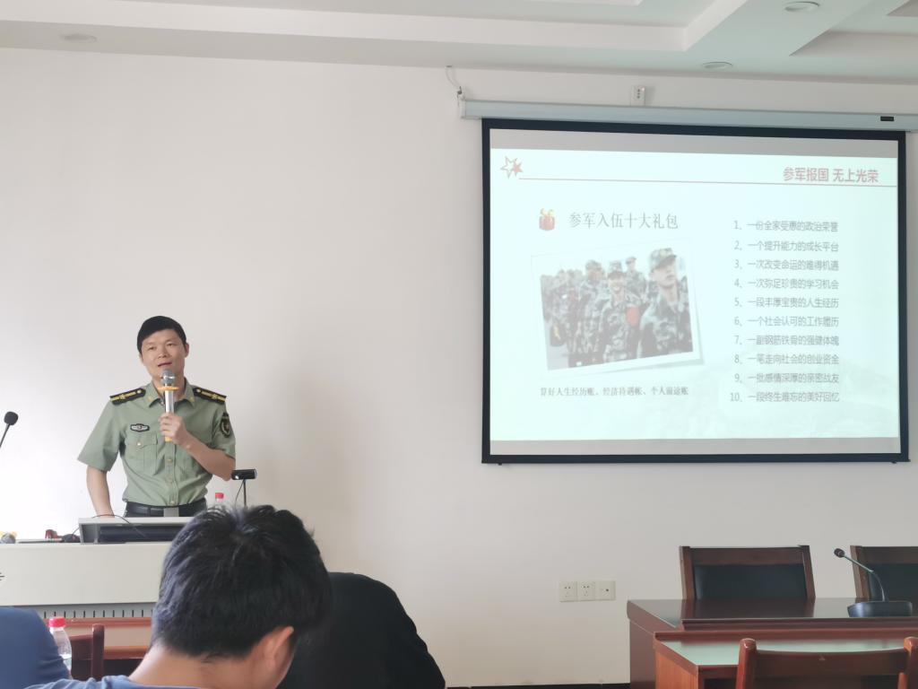 携笔从军报国 争当时代新人—太阳成集团tyc122ccvip‍‍‍‍‍‍‍‍举行2021届毕业生应征入伍政策宣讲动员会