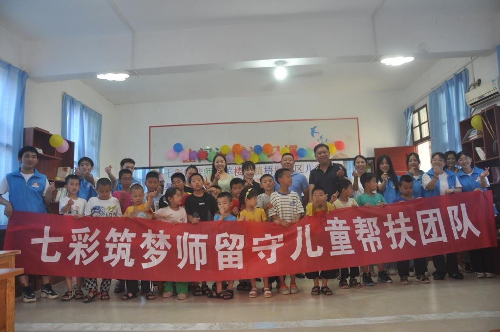 据了解,今年7月,“七彩筑梦师”留守儿童帮扶团队前往临湘市羊楼司镇梧桐社区留守儿童之家开展了为期一周的暑期“三下乡”社会实践活动。期间,实践队员与留守儿童同吃同住,围绕学业辅导、普通话推广、心理疏导、儿童五防四大内容开展一系列主题课堂及活动。寓教于乐,化教于心,在帮助留守儿童解决课业问题、推广普通话、安全教育的同时,普及心理健康知识,发现心理问题,进而在日常交流中进行心理疏导,为留守儿童打造一个健康假期、七彩童年。