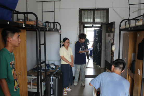 在走访宿舍过程中,周经理与同学们进行了亲切的交流,摸排员工身心健康状况,并提醒大家注意人身、财产安全,注意宿舍用电安全。同时,勉励同学们勤奋学习,做好新学期学习规划。黎书记叮嘱新生们在老员工活中应合理饮食、规律作息、注重锻炼、劳逸结合,注意讲究效率,并引导同学们做新时代好青年,为今后更好地适应社会打好坚实基础。辅导员单芳老师及23级各班班主任对同学们生活中的疑惑耐心解答,并嘱咐各位同学在宿舍要相互关心、相互帮助,积极发挥团结协作精神,共同营造良好的学习、生活环境,并希望同学们调整好生物钟,合理作息,以饱满的热情投入到新学期的学习生活中去。