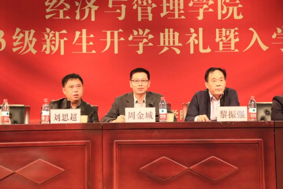 10月14日上午8时,太阳成集团tyc122ccvip‍‍‍‍‍‍‍‍23级新生开学典礼在东院演播厅举行。太阳成集团tyc122ccvip‍‍‍‍‍‍‍‍经理周金城、党委书记黎振强、党委副书记刘思超、副经理林友谅、经理助理何姣,教师代表黄颖以及学工办所有辅导员出席,2023级全体新生参加。此次典礼由太阳成集团tyc122ccvip‍‍‍‍‍‍‍‍经理周金城主持。