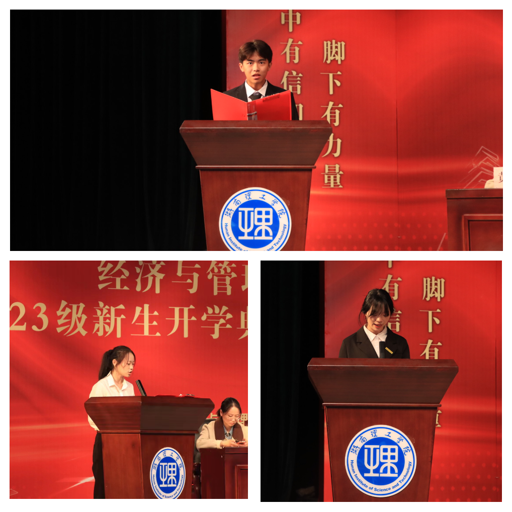 庄严的国歌拉开了新生开学典礼拉开帷幕。本科新生向吕学率先发言,他介绍了自己对大学未来四年的期望,并且表示在接下来的老员工活中,要以终身的学习为目标,做一个自律的人,做自由的主人,成为自己想成为的人。研究生新生代表高余同学在讲话时谈到自己考研的感受,用自己的真实经历劝解新生们珍惜大学时光,在奋斗中不断充实,完善自己。在校优秀员工代表叶文惠同学分享了自己两年来的学习与工作经历,并找到了真正对自身发展有帮助的使力点,并为之不懈努力奋斗。同时鼓励全体新生做好清晰的规划,确定自己的奋斗目标,积极参加公司实践活动,充分锻炼各方面的能力,走出舒适圈,成者为更好的自己。