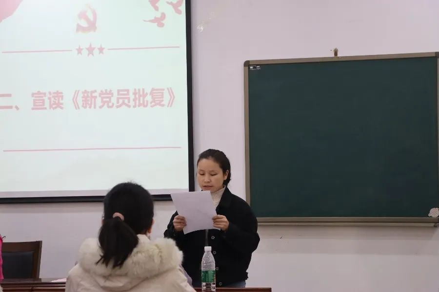 会议由新党员代表邹鑫同志发言,提出了自己的决心:牢记党的宗旨,把有限的生命投入到无限的为人民服务中去,在党组织中发挥党员的先锋模范作用,在关键时刻挺身而出不断加强自身道德修养,尊重领导,团结同学,自觉同一切违法犯罪行为作坚决斗争。代表的发言中充满了坚定地信念与责任担当,她表示将以更加积极的姿态投身到党的事业中,努力奋斗无私奉献。
