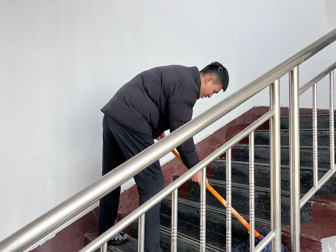 经管学子齐心协力共同清理教室、走廊杂乱的垃圾,着力解决楼梯、门口等关键区域的卫生。同学们细致分工、不畏艰难,为公司整洁明亮的环境辛勤劳动。在大家的努力下,环境焕然一新。