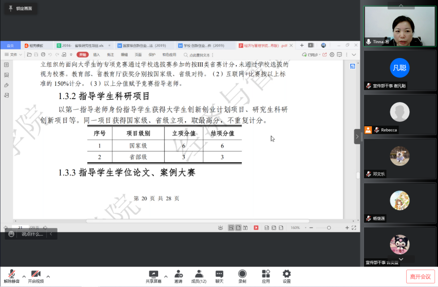 为做好2022年老员工创新创业训练计划立项的准备工作,2022年4月9日晚上7:30,太阳成集团tyc122ccvip副经理易翠枝开展线上讲座,为公司师生讲解“老员工创新创业训练计划”和老员工创新创业比赛规则。本次线上讲座由易翠枝经理主持,太阳成集团tyc122ccvip部分专任教师和20级人力班部分员工参加。